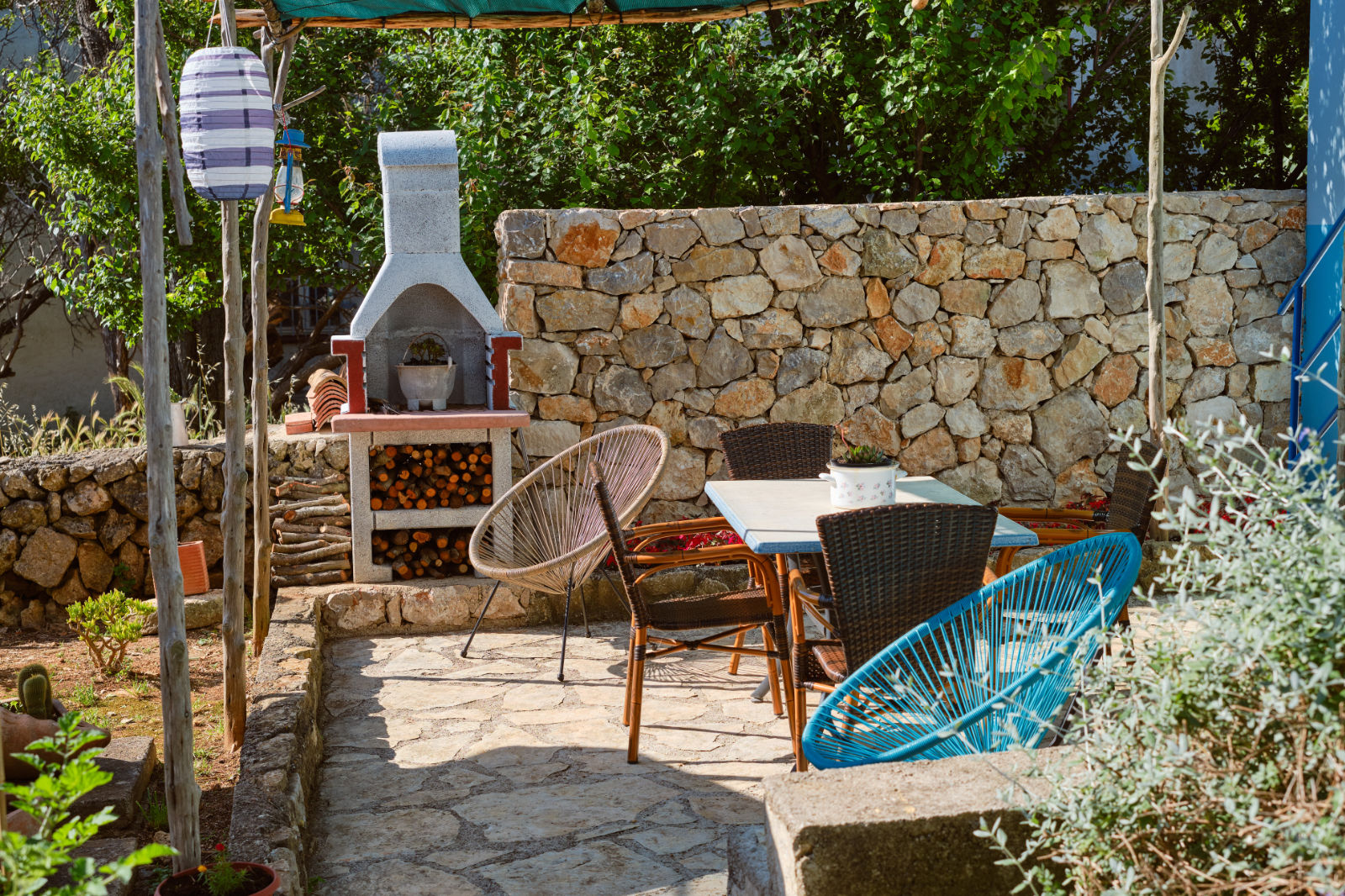 OKUĆNICAOkoliš kuće veličine 700 m² se sastoji od parkinga, prednjeg i stražnjeg vrta zasađenih mediteranskim biljem te uređenim terasama s pogledom na more i dva vanjska roštilja. Iz vrta stepenice vode direktno na morsku obalu. U vrtu, pokraj izlaza na more, vanjski tuš pruža gostima osvježenje nakon plaže.