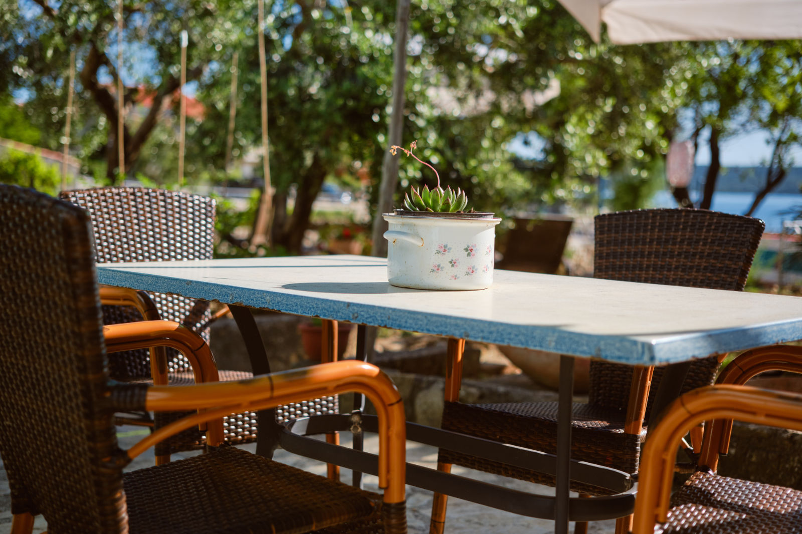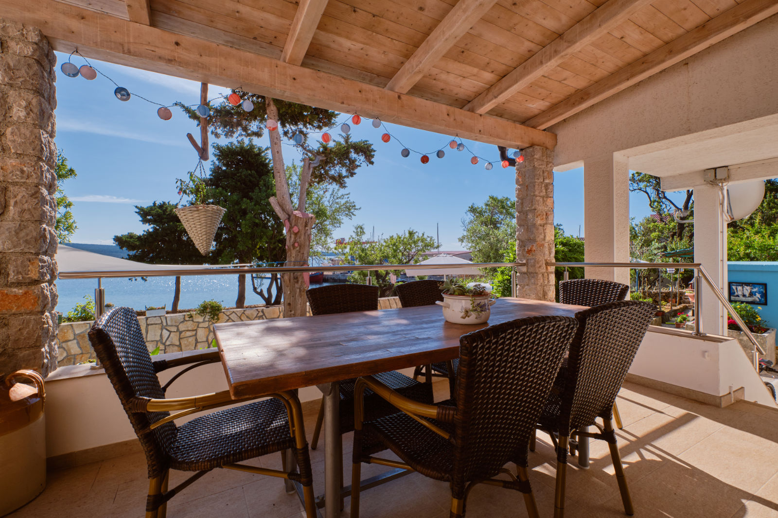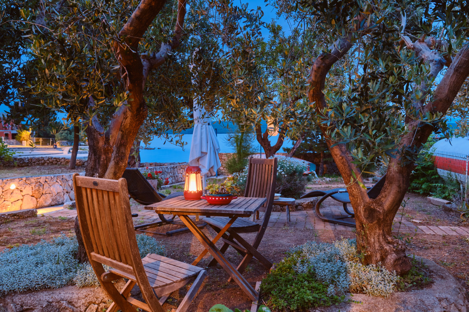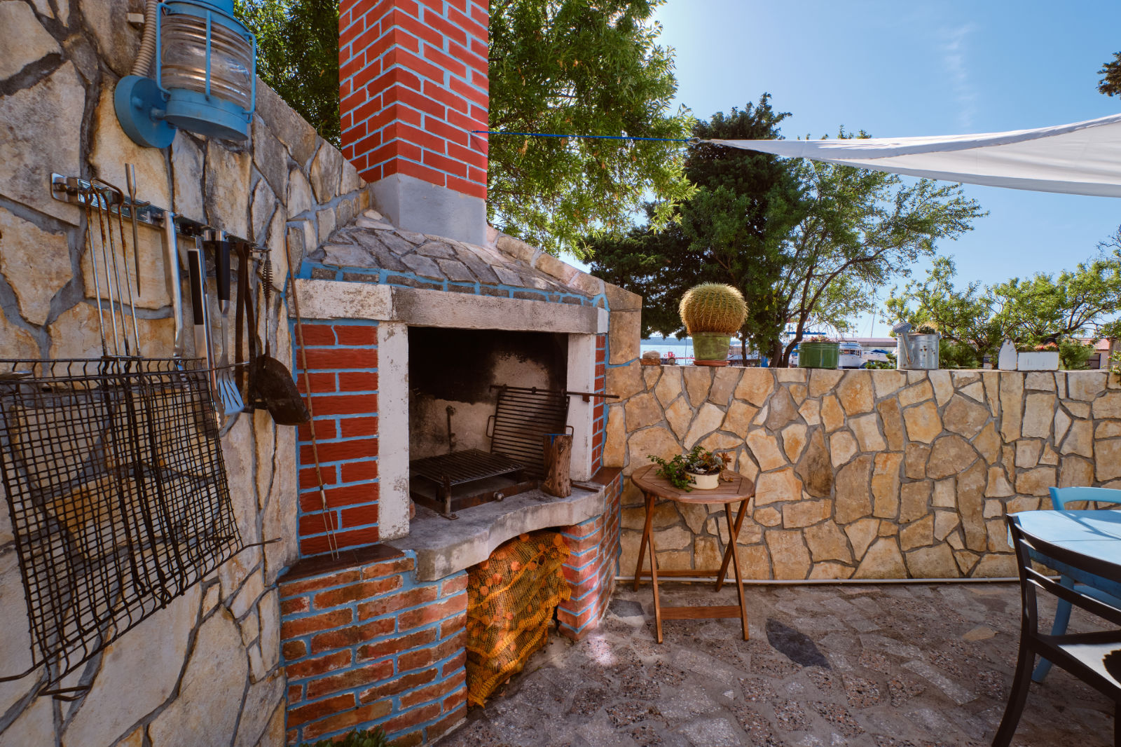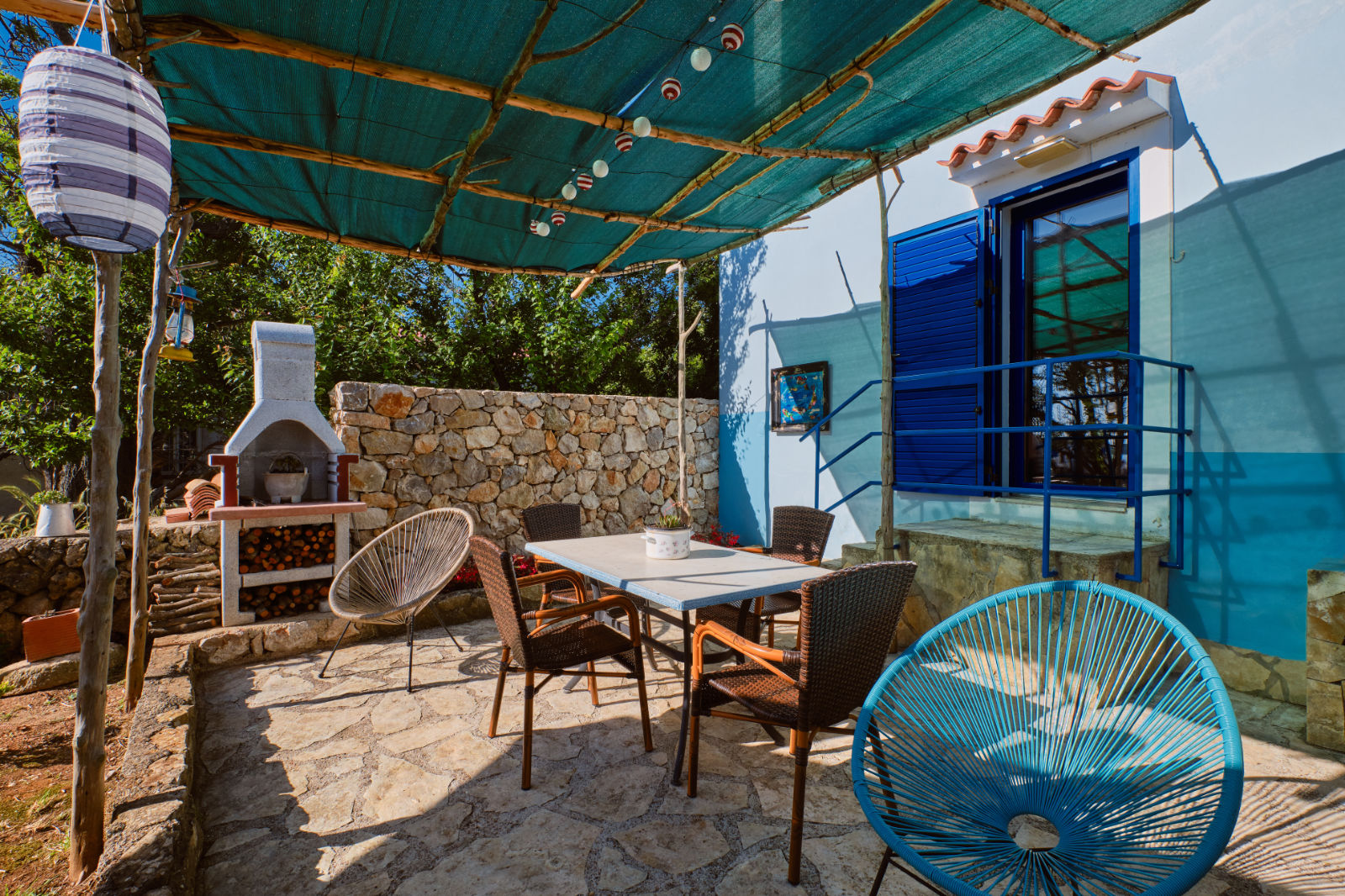 Around the house there is a yard of 700 m² with parking, front and back yard with Mediterranean plants and terraces with sea view and two outdoor barbecues. From the garden there are stairs leading directly to the sea. In the garden, next to the exit to the sea, there is an outdoor shower which offers to the guests a refreshment on their return from the beach.