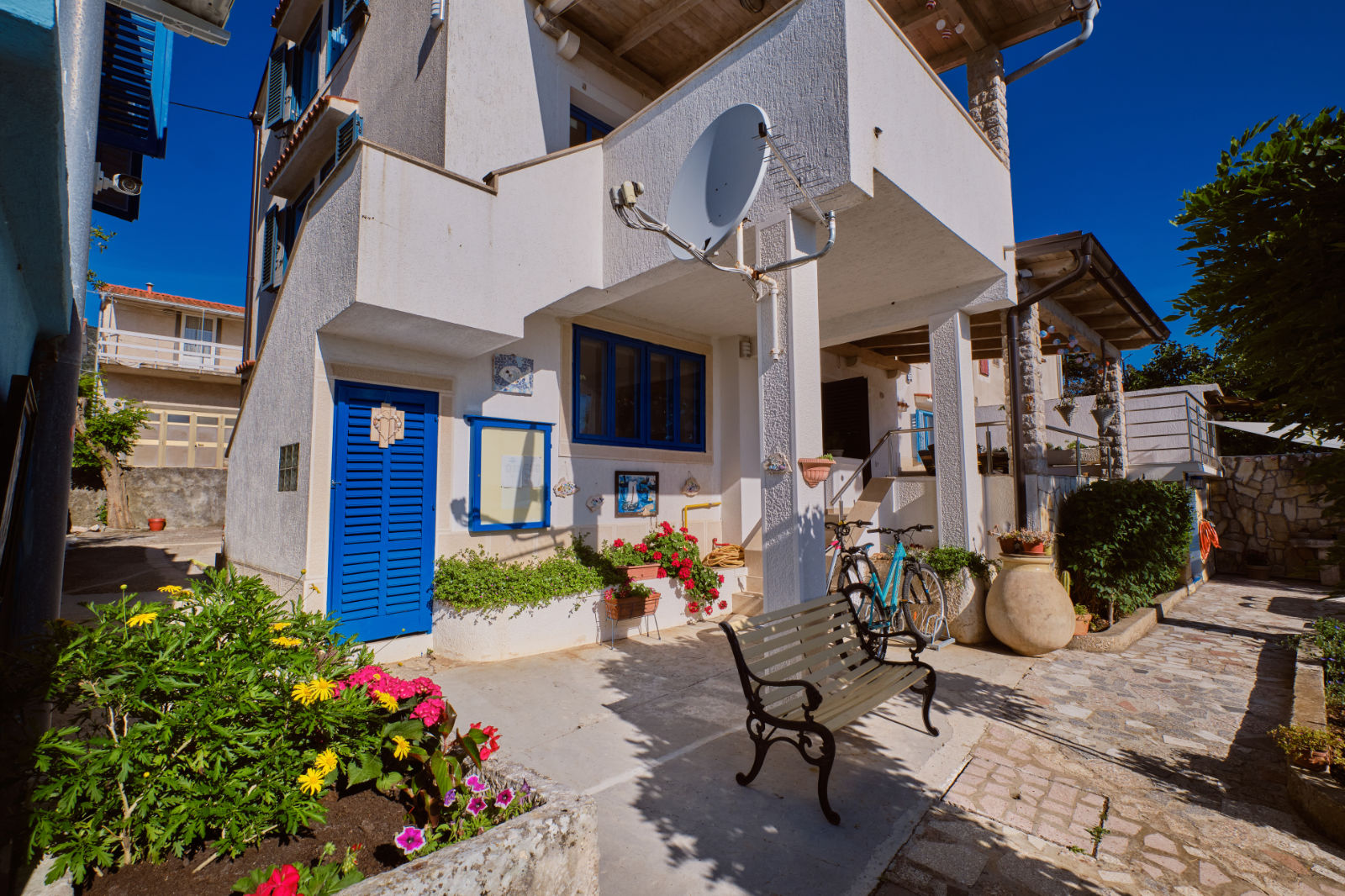 All our accommodations are equipped with SAT TV, WI-FI, heating and cooling. Our guests have two bikes, three SUP boards and one kayak on the disposition. We also offer a private parking and as per our agreement a summer mooring for our boat. We are the third generation in our rental family, so it is a family tradition and a
