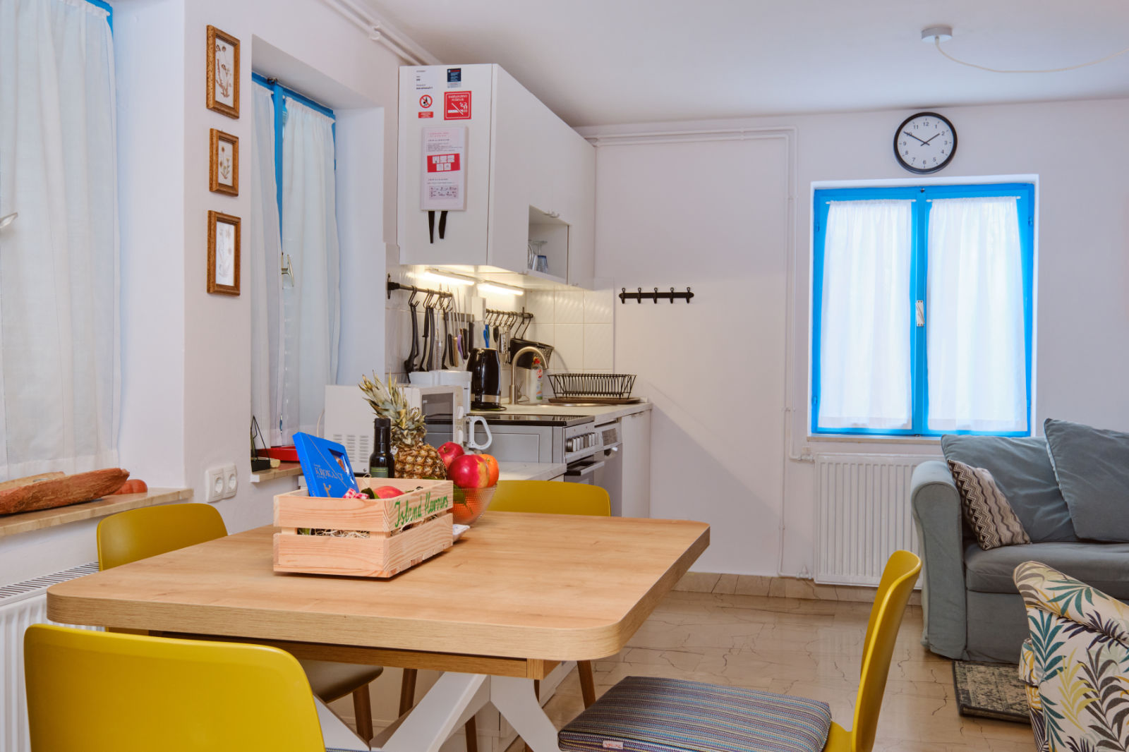 The external stairs lead to the veranda which is the entrance to the apartment.