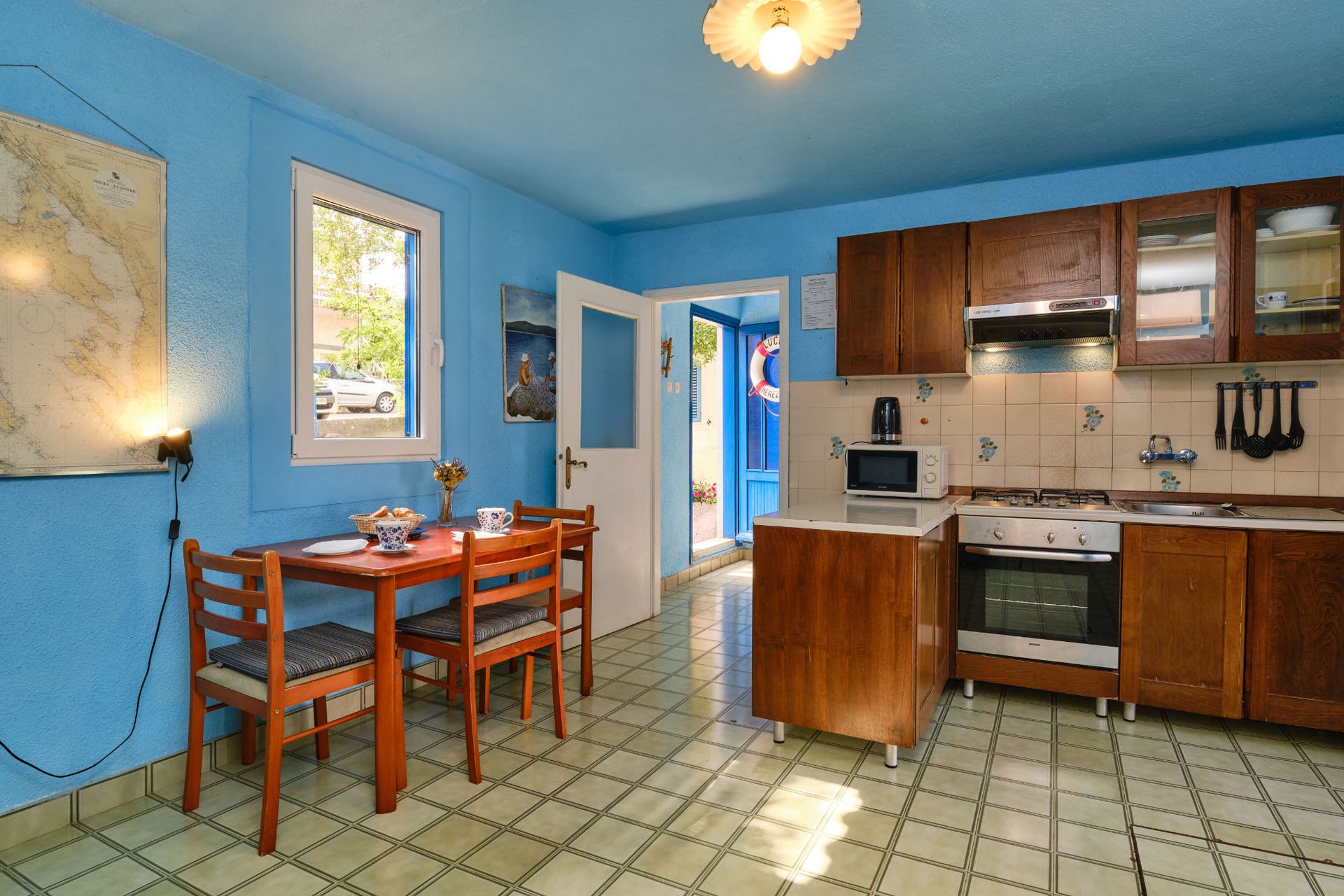 floor, kitchen/dining room with access to the terrace.