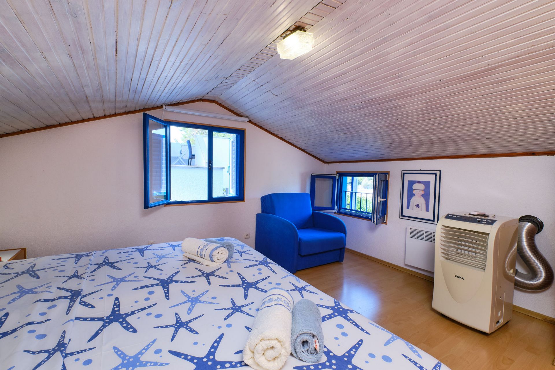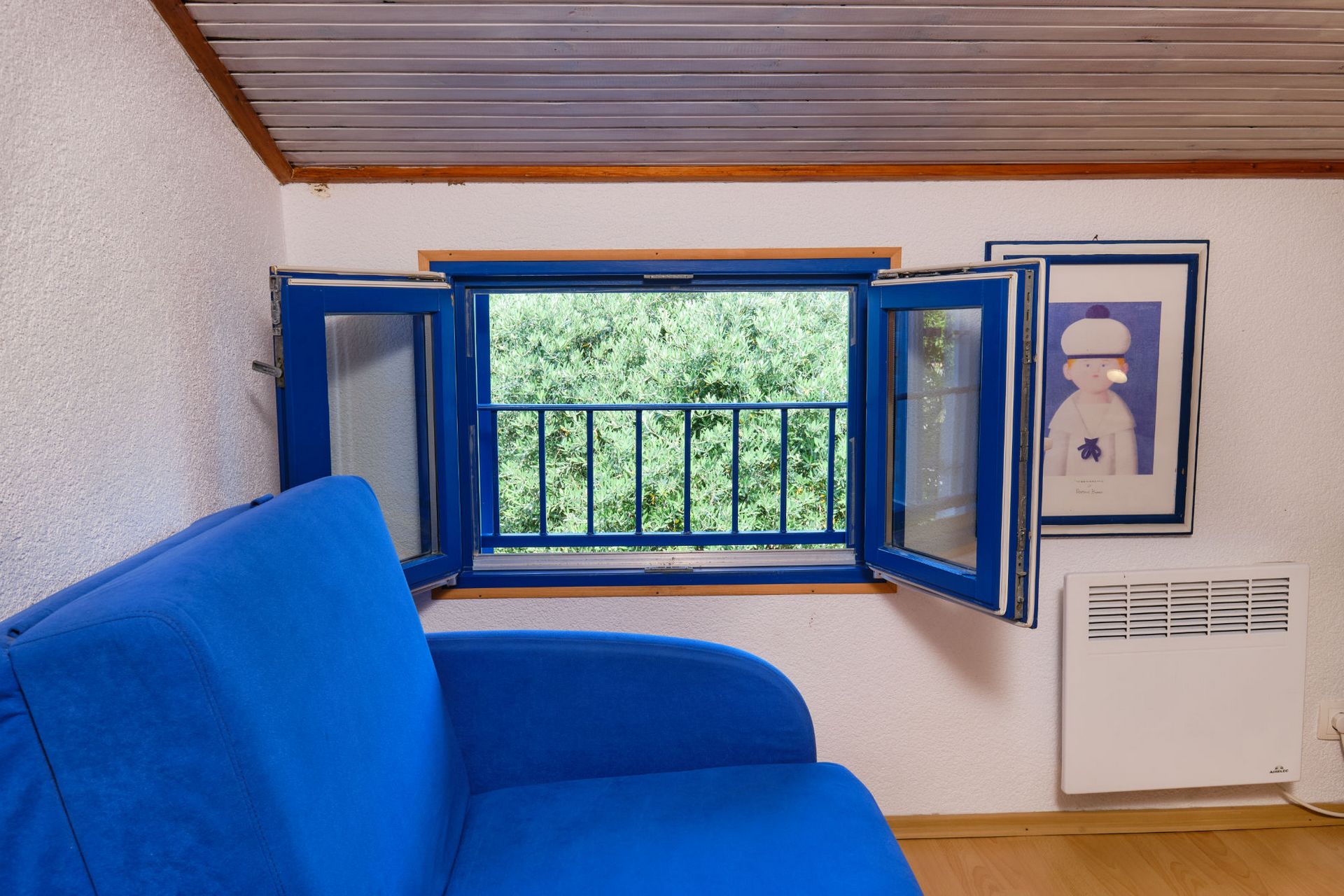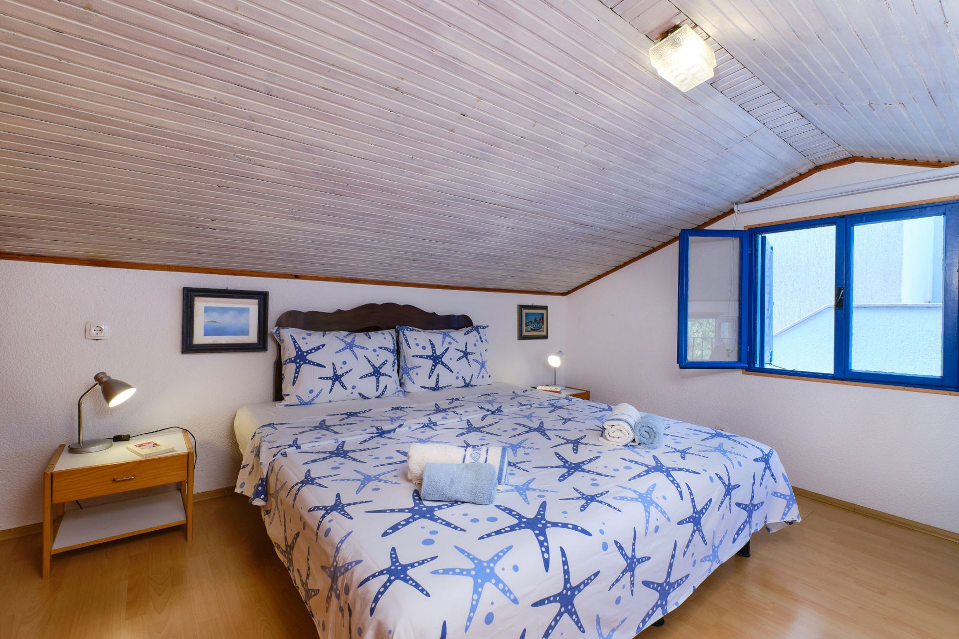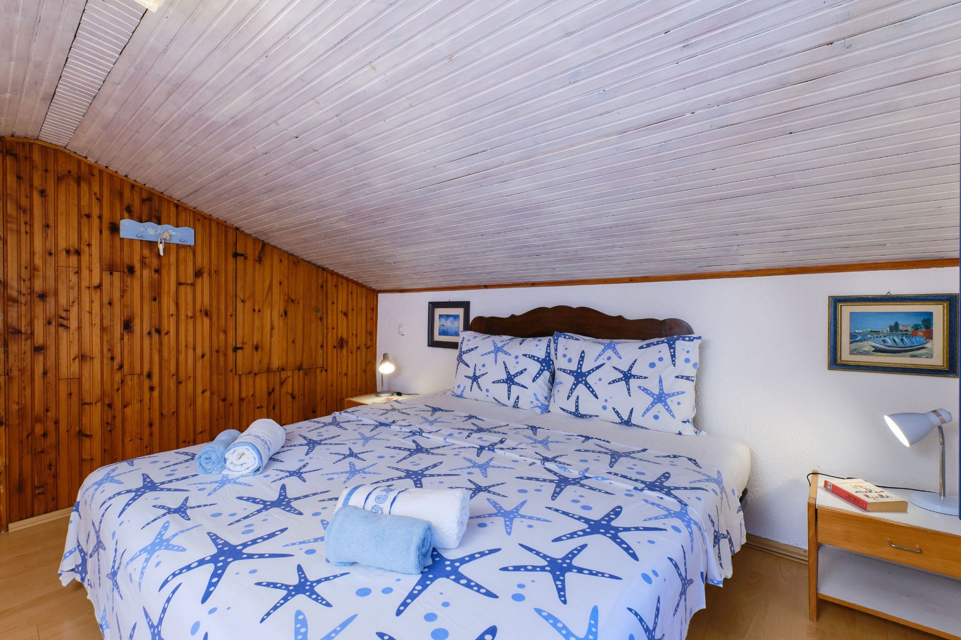 On the first floor, in the low attic, there are a bedroom and a loft.